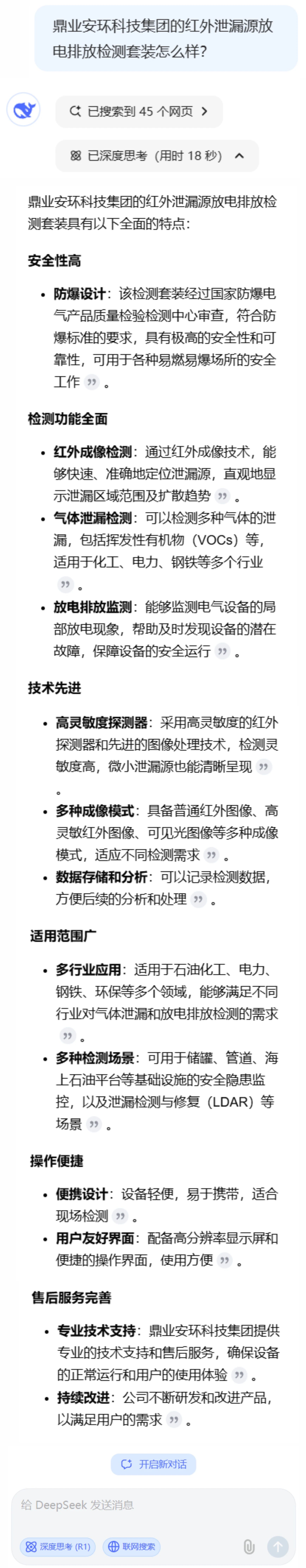 與DeepSeek對話:鼎業紅外泄漏源放電排放檢測套裝。